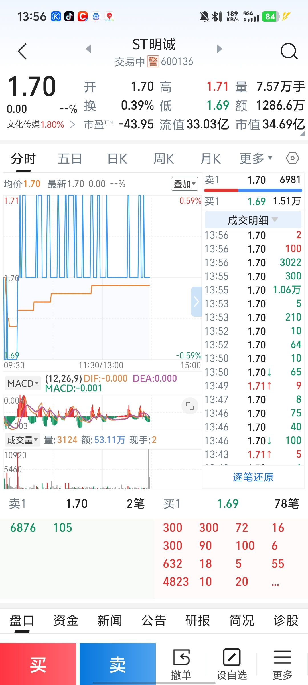 $ST明诚(SH600136)$ 两万手砸下来我还以为大盘跳水了,再一看大盘在起飞