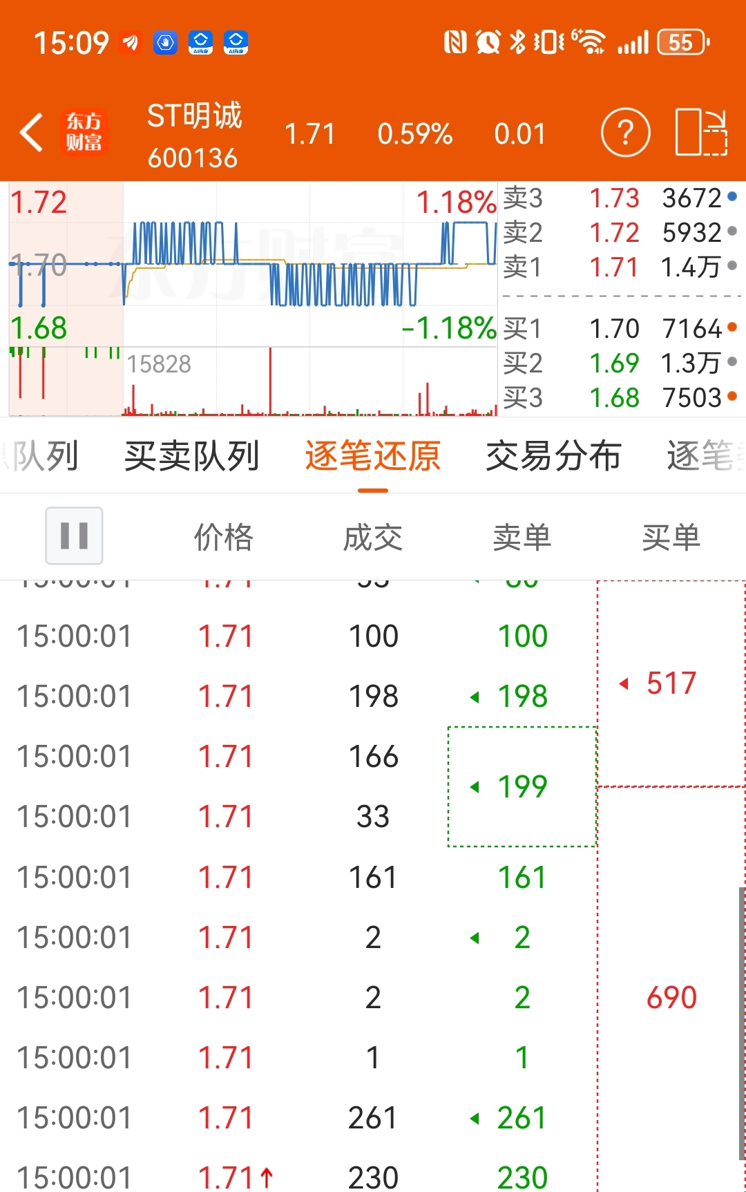 $ST明诚(SH600136)$ 搞了一点点