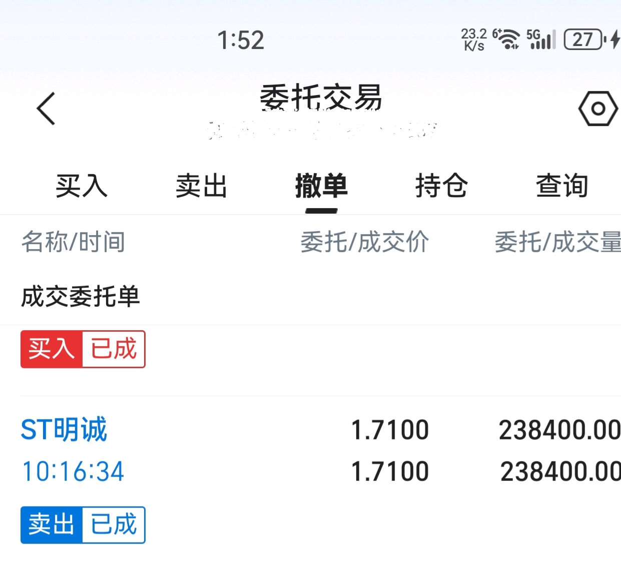$ST明诚(SH600136)$ 你们就不能1.71买吗?上午10点16挂的单,两个多小时才卖完。有毒,真的!明诚,再也不见了。