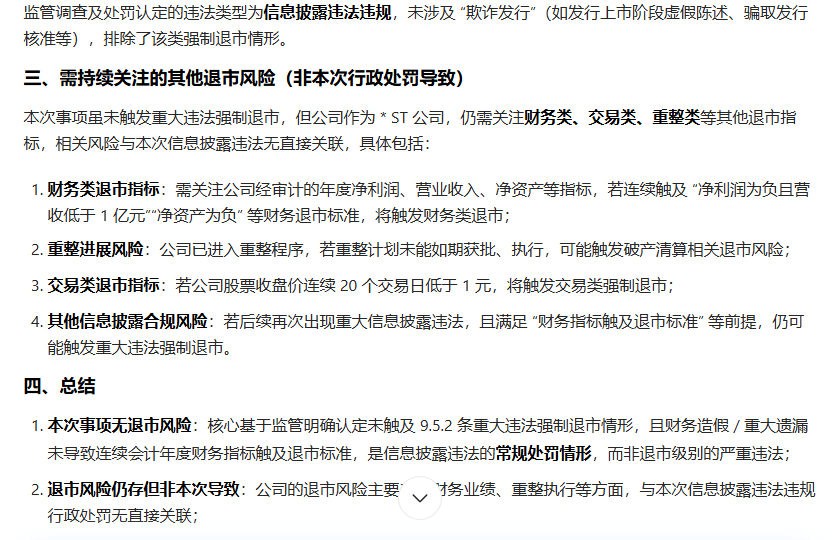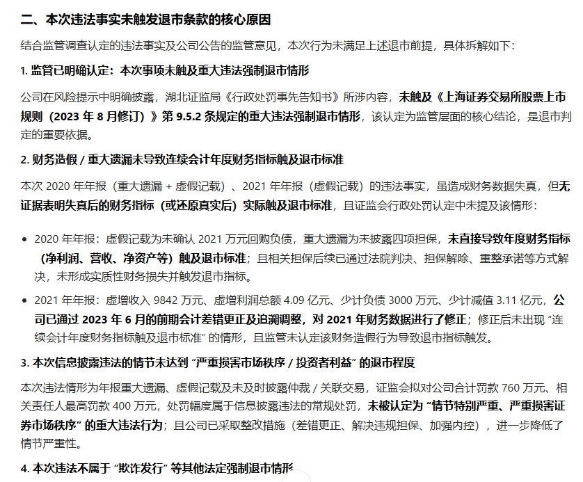 武汉当代明诚文化体育集团股份有限公司(以下简称“公司”)于2023年7月26日收到中国证券监督管理委员会(以下简称“中国证监会”)下发的《立案告知书》(编号:证监立案字0052023008号),因公司涉嫌信息披露违法违规,根据《中华人民共和国证券法》《中华人民共和国行政处罚法》等法律法规,中国证监会决定对公司立案。(公告编号:临2023-089号) 2024年2月23日,公司收到中国证监会湖北监管局下发的《行政处罚事先告知书》[鄂处罚字(2024)1号],现将相关内容公告如下: 一、《行政处罚事先告知书》主要内容 “武汉当代明诚文化体育集团股份有限公司、易仁涛、李珍玉、高维、闫爱华、喻凌霄: 武汉当代明诚文化体育集团股份有限公司(以下简称当代明诚或公司)涉嫌信息披露违法一案已由我局调查完毕。我局拟依法对你们作出行政处罚。现将我局拟对你们做出行政处罚所根据的违法事实、理由、依据及你们享有的相关权利予以告知。 经查明,当代明诚涉嫌信息披露违法的事实如下: (一)2020年年报披露的担保事项存在重大遗漏 1.公司为关联方当代投资向湖北合作及其子公司借款提供担保 2020年1月21日,武汉当代科技投资有限公司(以下简称当代投资)与湖北合作银通融资租赁有限公司(以下简称湖北合作银通)签署《借款合同》,借款合同约定,由湖北合作银通向当代投资借款4亿元。同时,当代明诚等主体与湖北合作银通分别签署了《保证合同》,为前述借款提供担保。 2020年12月11日,当代投资与湖北合作投资集团有限公司(以下简称湖北合作)签署《额度授信合同》(约定授信金额为3.1亿元),后又签署《借款合同》明确借款金额为2.6亿元。当代明诚等主体与湖北合作分别签署了《保证合同》,为借款提供担保。 2.公司为雨石矿业向中经贸易借款提供担保 武汉市雨石矿业有限公司(以下简称雨石矿业)为当代投资的全资子公司,当代投资与当代明诚的实际控制人均为艾路明,依据《上市公司信息披露管理办法》(证监会令第182号)第六十二条第(四)项关于上市公司的关联法人中规定的“3.关联自然人......间接控制的......除上市公司及其控股子公司以外的法人”,雨石矿业为当代明诚的关联方。 2019年6月,湖北省中经贸易有限公司(以下简称中经贸易)与雨石矿业签订合同,约定由中经贸易向雨石矿业提供借款12亿元,武汉当代科技产业集团股份有限公司(以下简称当代集团)为上述借款提供不可撤销的差额补足承诺,当代明诚为当代集团的差额补足承诺提供连带保证责任。2020年6月,上述借款尚余7.5亿元未还,当代明诚再次对当代集团的差额补足承诺提供连带保证责任。 3.公司为新英开曼对亚足联付款义务提供全额担保 2020年11月26日,当代明诚控股子公司Super Sports Media Inc.(以下简称新英开曼)与亚洲足球联合会(以下简称亚足联),签订了相关许可协议及附属协议。根据协议,新英开曼获得了2021年至2024年亚足联授权赛事在中国大陆地区的版权和赞助权益;约定新英开曼向亚足联支付相关对价,并约定分期支付上述金额。在协议附件中的相关担保函中,约定由当代明诚就主协议中新英开曼对亚足联的1.5亿美元付款义务提供全额保证担保。 4.公司为当代足球俱乐部向曾某潮借款提供担保 2020年6月4日,曾某潮与当代明诚足球俱乐部有限公司(以下简称当代足俱)签订合同,约定由曾某潮向当代足俱提供借款700万元。2020年6月5日,当代明诚与曾某潮、当代足俱三方签署了《保证合同》,约定当代明诚为当代足俱的借款偿付义务提供不可撤销的连带责任保证。 上述四项担保均未在2020年年报中披露,构成《中华人民共和国证券法》(以下简称《证券法》)第一百九十七条第二款规定的重大遗漏。2023年10月9日,公司发布《关于公司诉讼的进展公告》,公告称收到法院判决,当代明诚不承担对当代投资借款的担保责任。2023年11月13日,公司发布《关于公司与原控股子公司与亚洲足球联合会担保解除的公告》,至此公司为新英开曼对亚足联付款义务提供全额担保责任解除。公司《重整计划》中披露,当代集团及其关联方已向公司出具书面承诺函,承诺以无条件豁免与公司依法应承担的赔偿责任等额的公司对当代集团及其关联方的债务的方式,解除公司的违规担保问题。 (二)2020年年报存在虚假记载 2018年12月3日,当代明诚与武汉文信股权投资合伙企业(有限合伙)(以下简称文信基金)等主体签署《武汉当代银兴影业投资管理有限责任公司股权转让协议》,约定文信基金出资2,021万元受让当代明诚持有的其控股子公司武汉当代银兴影业投资管理有限责任公司(以下简称当代银兴)10.11%股权。 同日,当代明诚与文信基金签署了《武汉当代银兴影业投资管理有限责任公司投资协议》约定若当代银兴未完成业绩承诺,则公司须按照年化10%的收益率回购文信基金所持当代银兴的股权。当代明诚、文信基金及武汉众视盛纳文化传媒有限公司还签订《武汉当代银兴影业投资管理有限责任公司投资协议之补充协议》,约定自文信基金投资当代银兴满24个月后,当代明诚无条件回购文信基金所持当代银兴的股权。根据约定,当代明诚应当在2020年12月11日前支付回购款项。当代明诚在触发回购义务的情况下,未在2020年年报中将上述2,021万元股权投资款的回购债务确认为负债,构成《证券法》第一百九十七条第二款规定