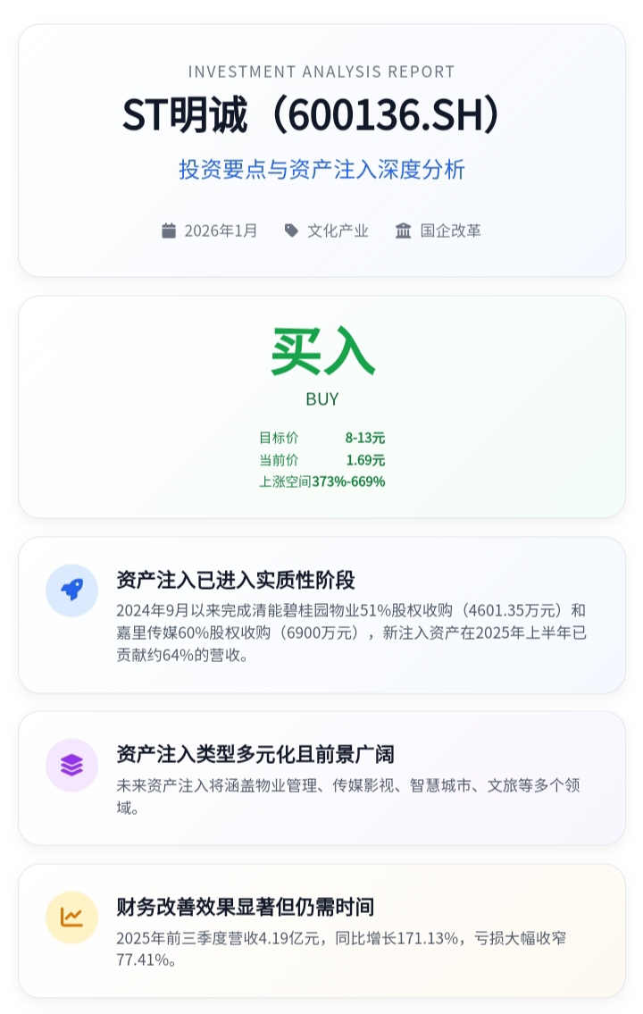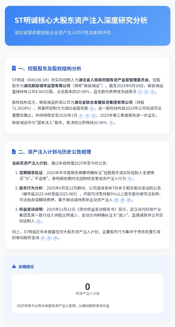 转发:ST明诚核心大股东资产注入深度研究分析谨慎与乐观报告
