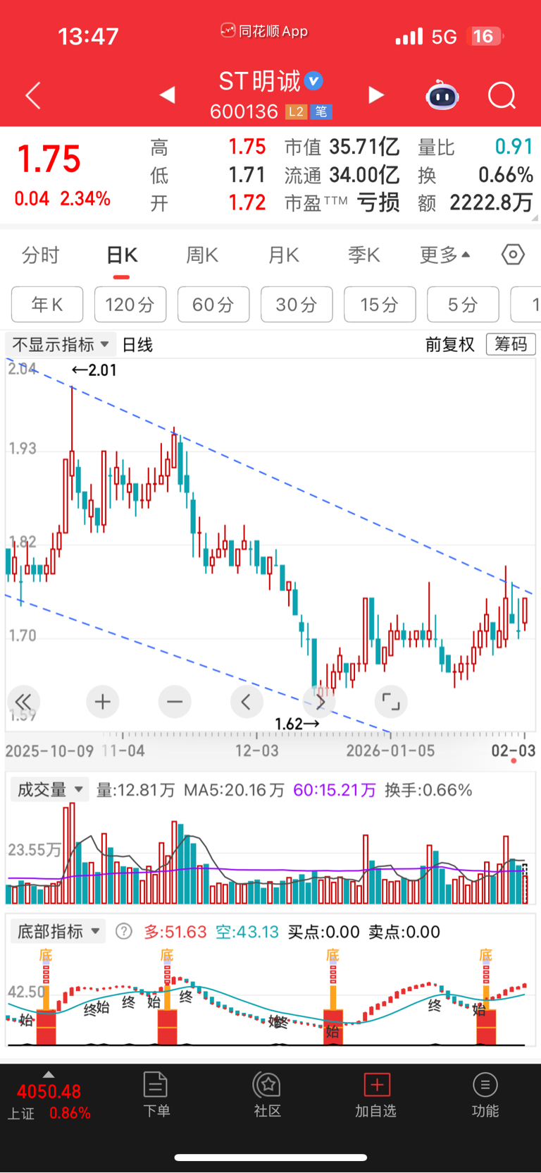 $ST明诚(SH600136)$ 1.75的压力何时突破???
