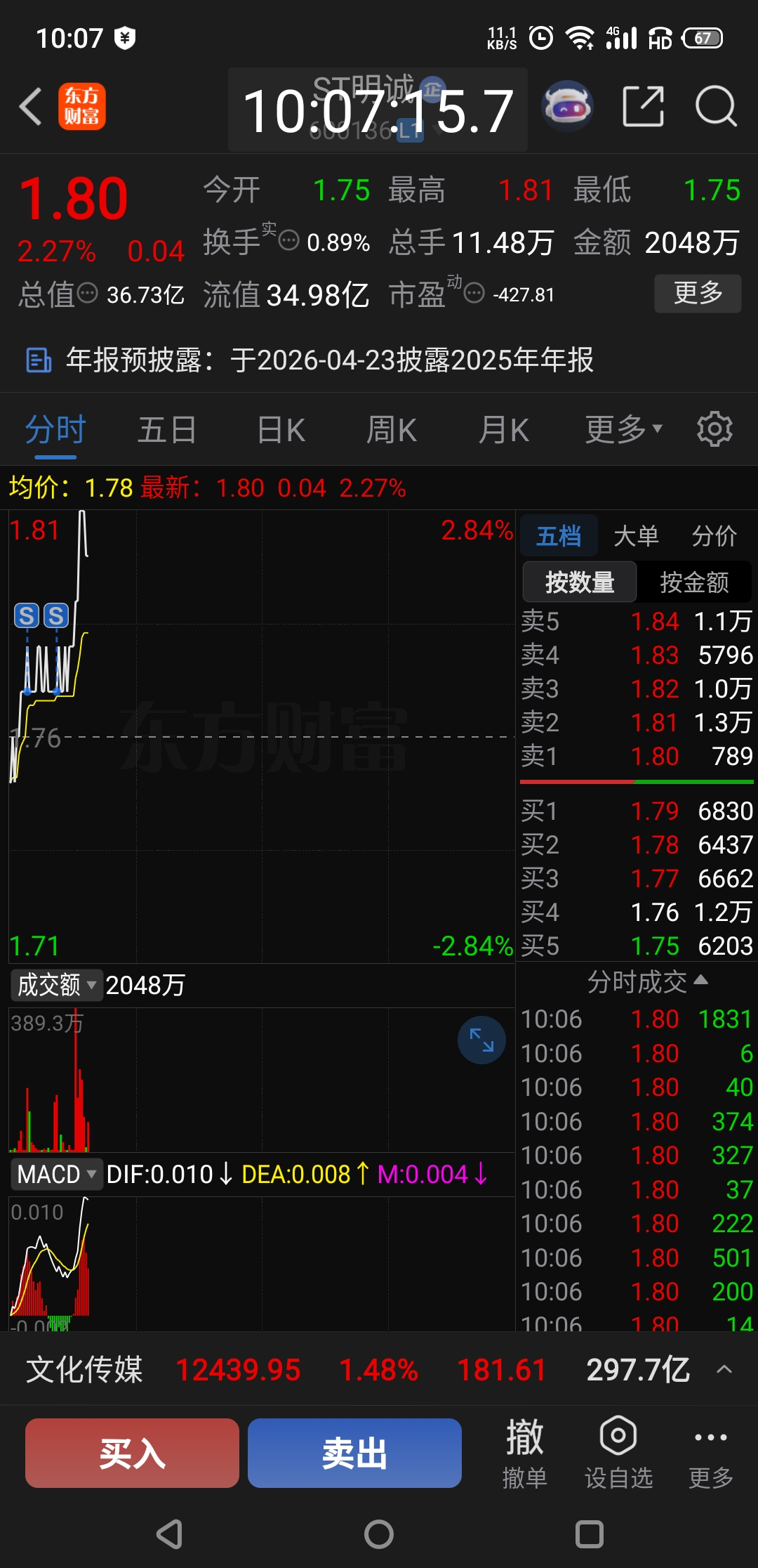 $ST明诚(SH600136)$ 马德,卖太早了