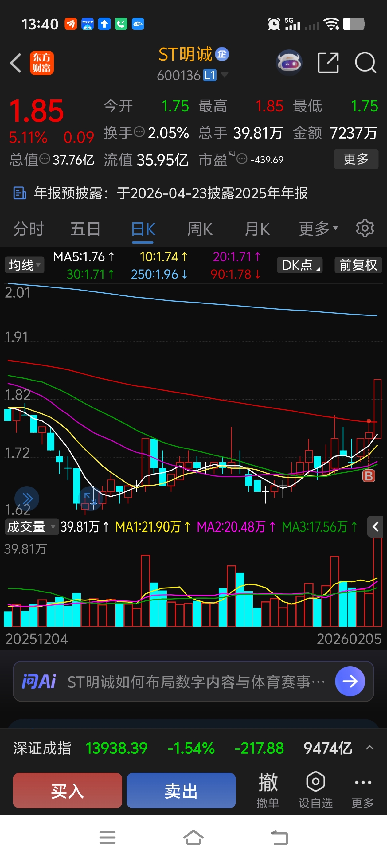 $ST明诚(SH600136)$ 昨天才来,还没加仓