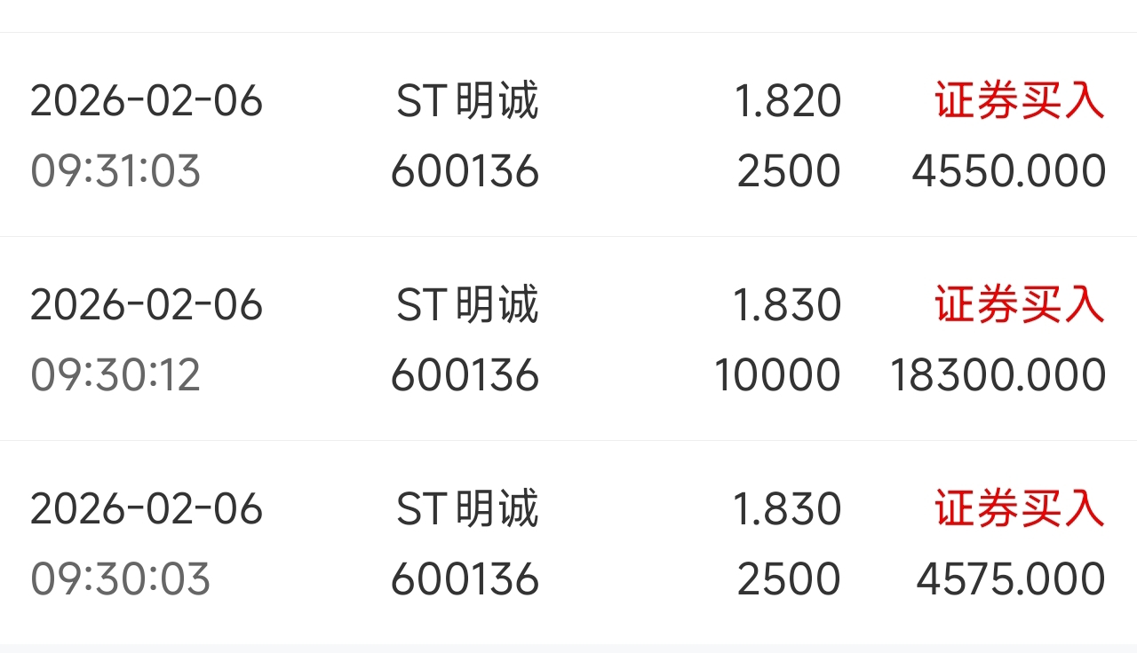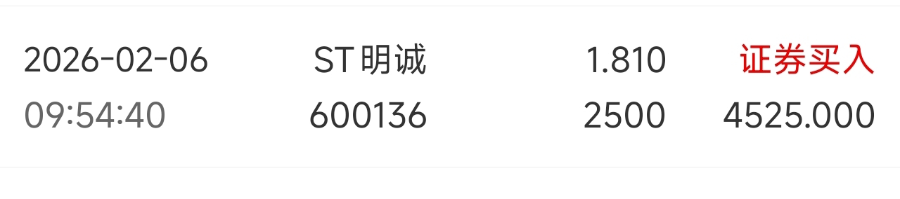 $ST明诚(SH600136)$ 早晨分批买进。刚刚1.81又买进。哈哈。仓位满满!坐等回光返照拉升!