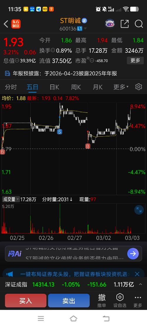 $ST明诚(SH600136)$  勾庄真厉害\uf3f5