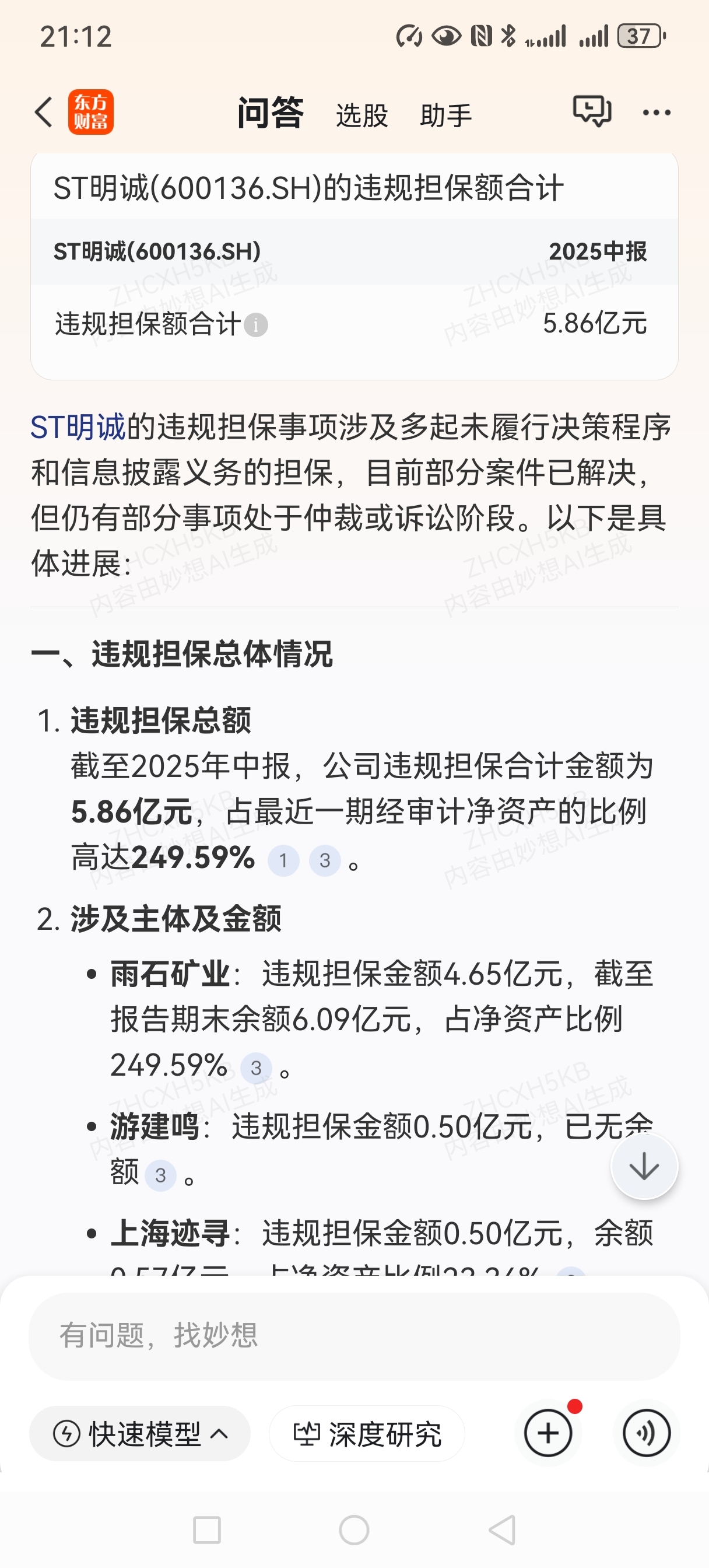 $ST明诚(SH600136)$ 今天出清了,刚才问为AI,发现公司有雷。见图!