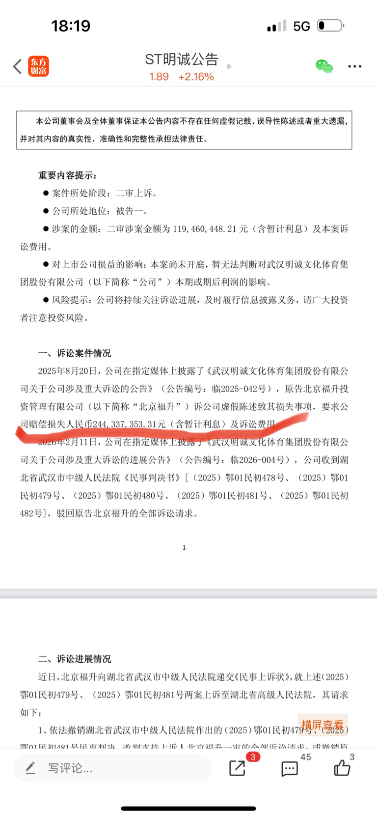 $ST明诚(SH600136)$ 欠着北京2个多亿!这下毁了!
