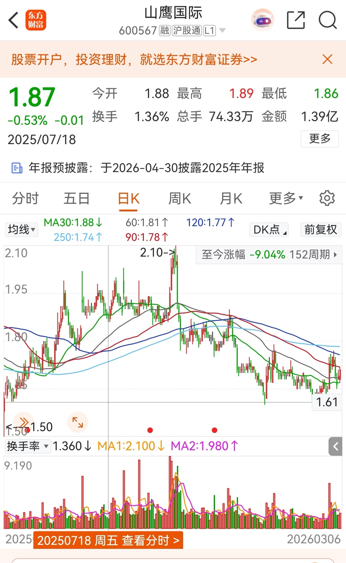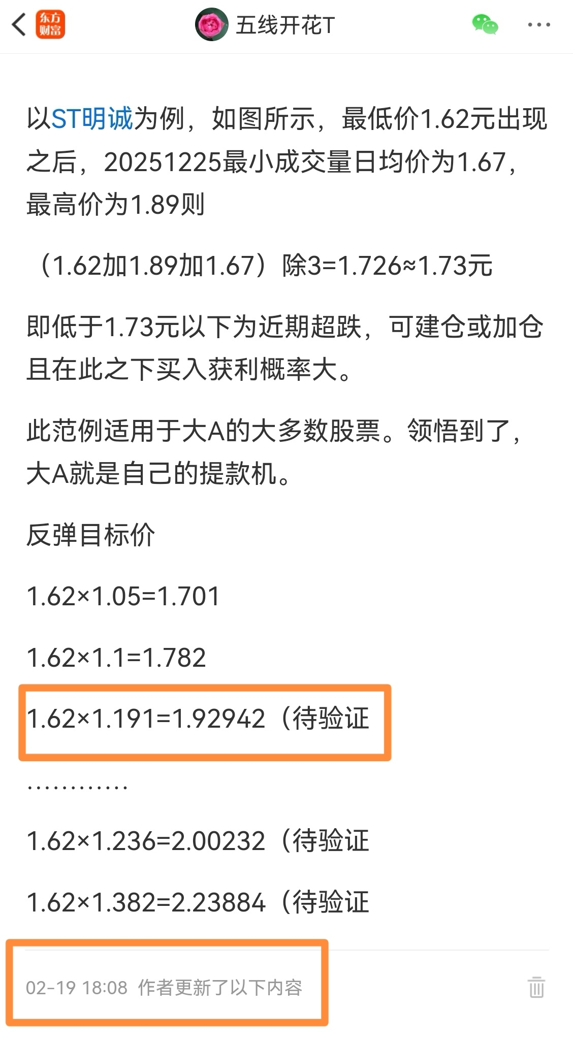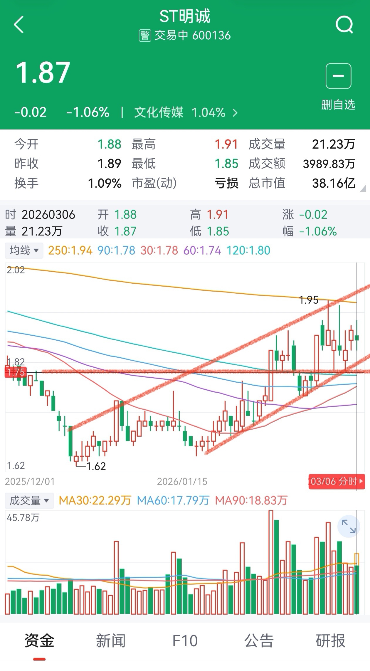 ST明诚,1.62加1.95求平均=1.785=1.79