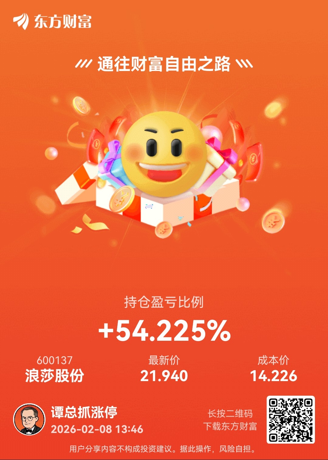 $浪莎股份(SH600137)$ 上次晒了收益回撤了35%,再晒一下看回撤多少