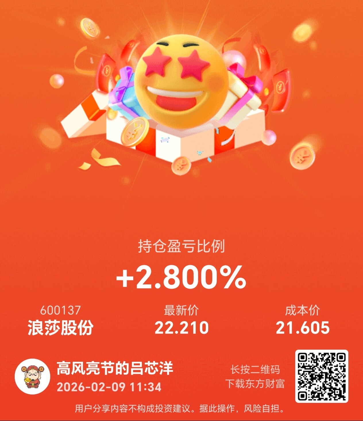 温馨提示: 1.根据《证券法》规定,禁止编造、传播虚假信息或者误导性信息,扰乱证券市场;2.用户在本社区发表的所有资料、言论等仅代表个人观点,与本网站立场无关,不对您构成任何投资建议。用户应基于自己的独立判断,自行决定证券投资并承担相应风险。《东方财富社区管理规定》