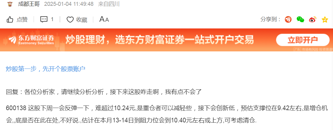温馨提示: 1.根据《证券法》规定,禁止编造、传播虚假信息或者误导性信息,扰乱证券市场;2.用户在本社区发表的所有资料、言论等仅代表个人观点,与本网站立场无关,不对您构成任何投资建议。用户应基于自己的独立判断,自行决定证券投资并承担相应风险。《东方财富社区管理规定》