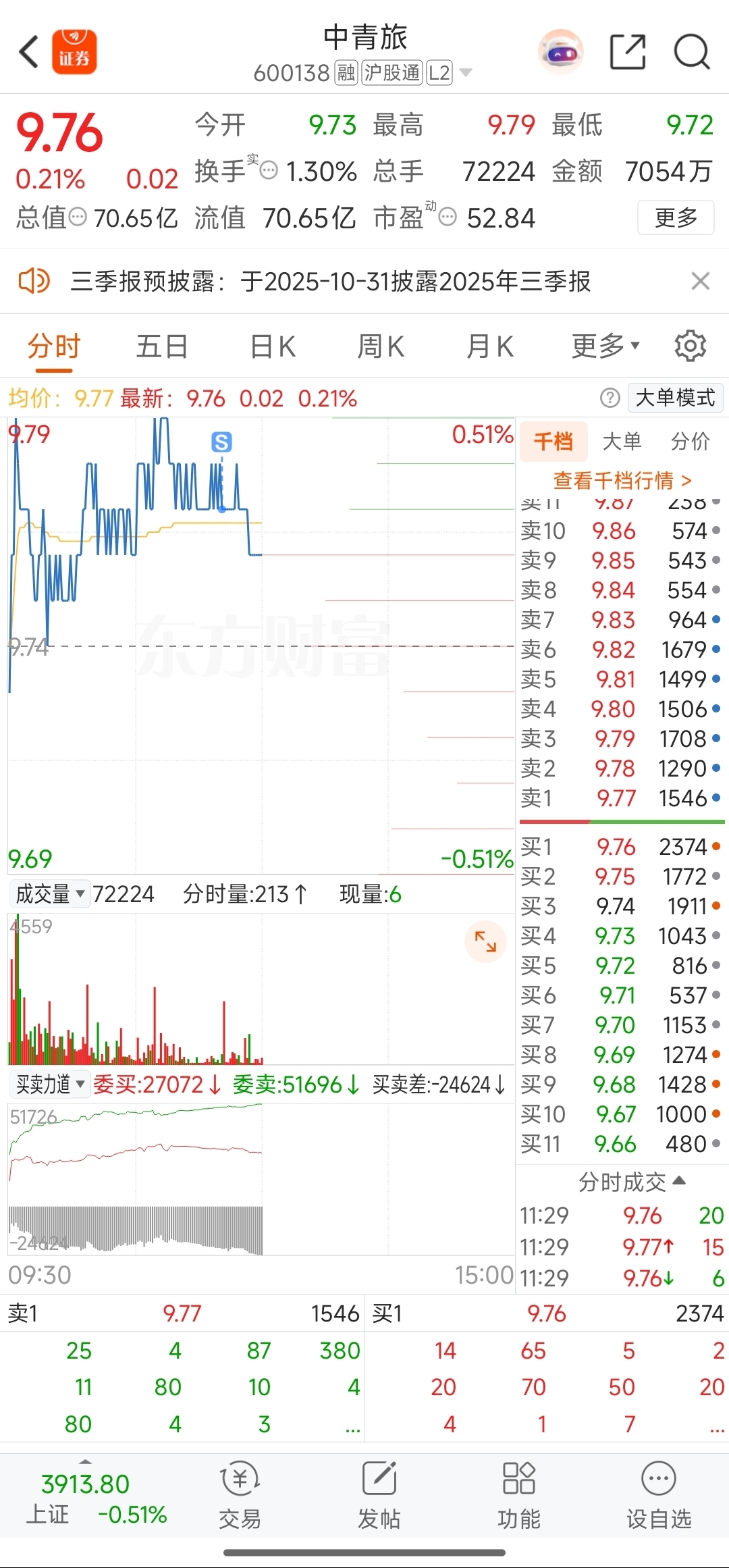 $中青旅(SH600138)$ 算你狠,一点反弹都不给,板块涨也无动于衷,割肉