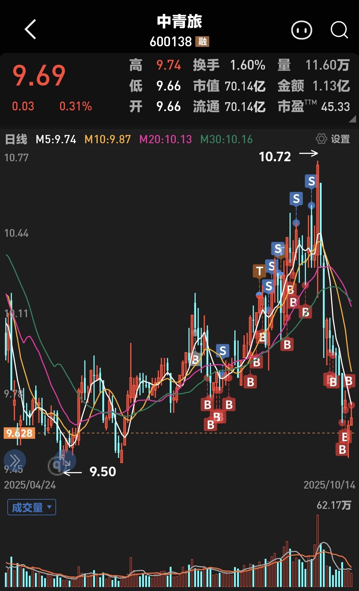 $中青旅(SH600138)$ 再次回到底部,买入没啥可赔的