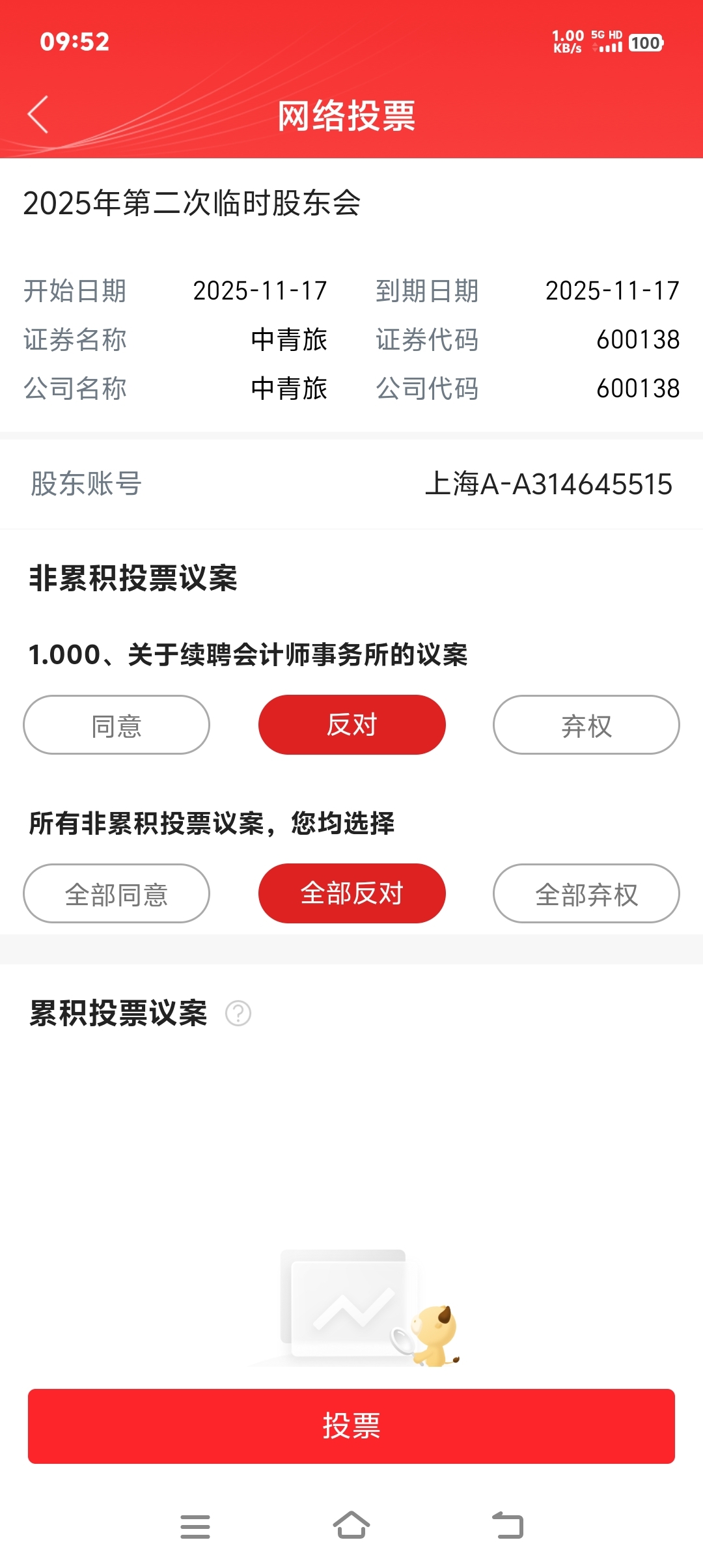 $中青旅(SH600138)$ 早上想起今天股东大会,投了一票。