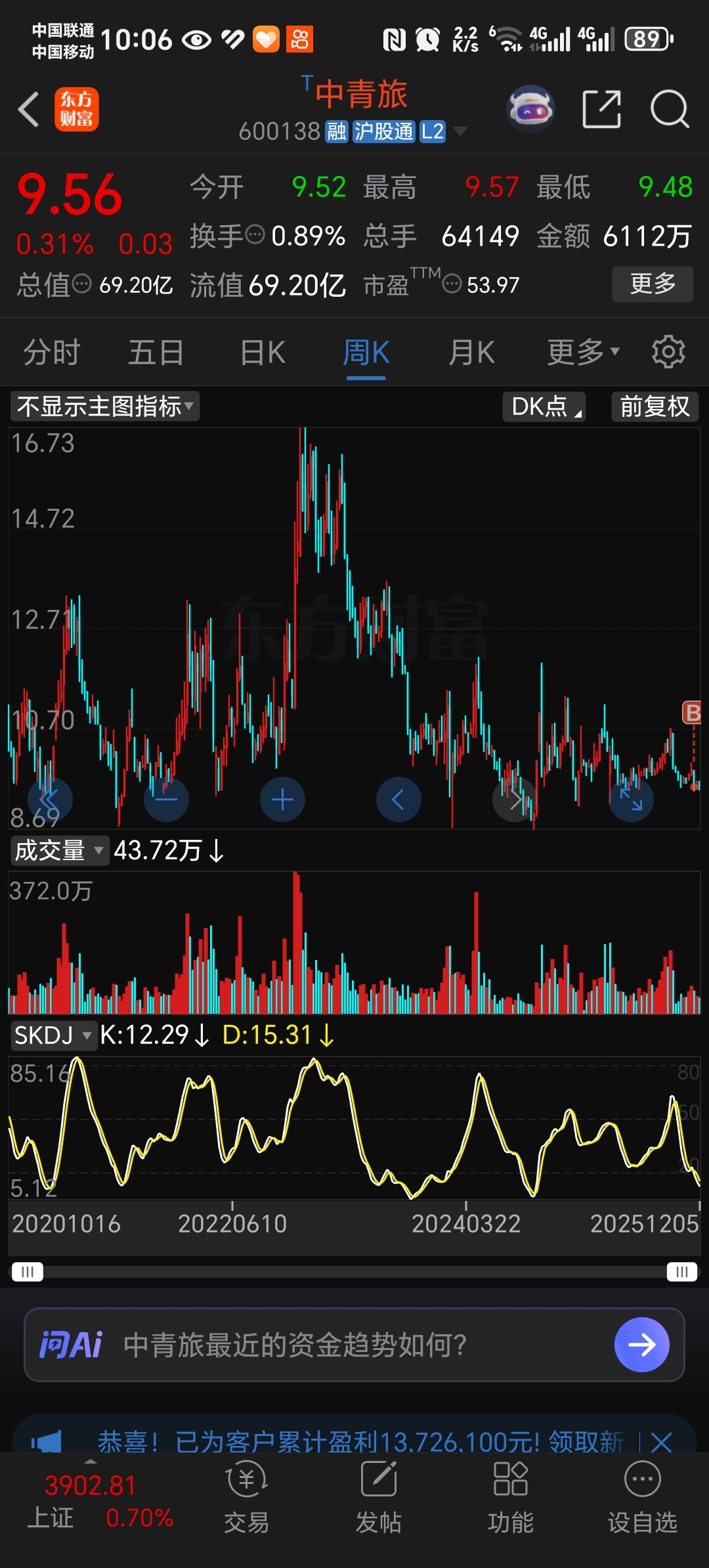 $中青旅(SH600138)$ 看成交量,SKDJ,历史均线,中青旅俺要在9.25加仓一次,如果给破9那就再加仓一次