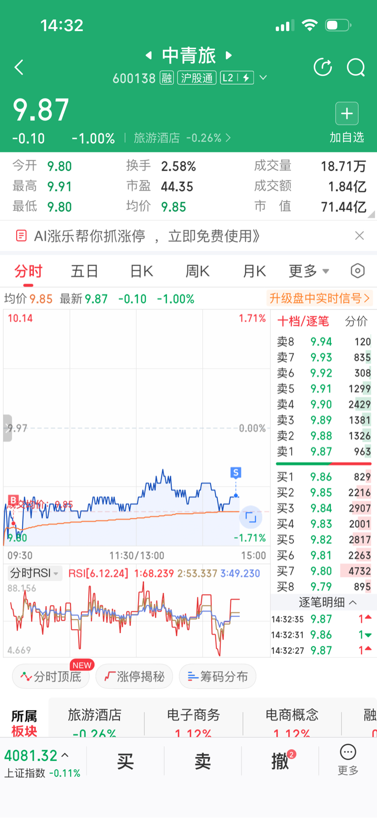 $中青旅(SH600138)$ 今天加的卖了,赚了个手续费,明天低点再加。波动太小,划不来。