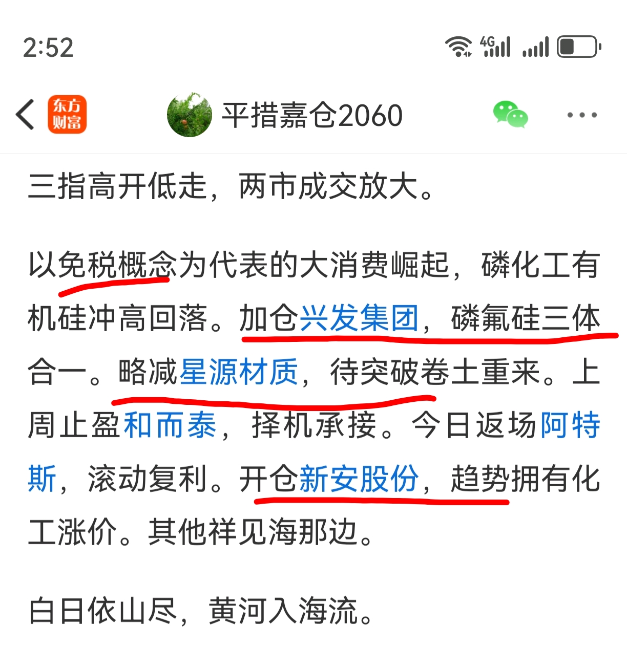 盘中即预判,两市成交2.2万亿,上证率先拉升并带动中小板翻红。逢低连续加仓兴发集团,主力吸筹阶段。英唐智控复牌20厘米涨停,可惜停牌前减仓。盈新发展前期调整加至重仓,符合主旋律。进场新安股份,唯二磷氟硅三位一体。它不赘述。