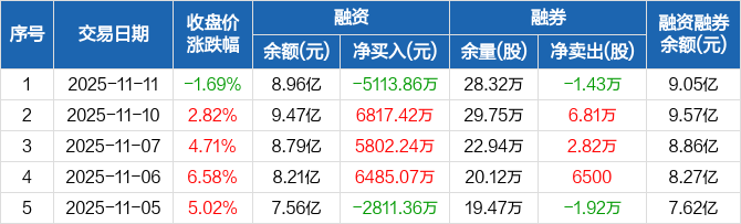 兴发集团:融资净偿还5113.86万元,融资余额8.96亿元(11-11)