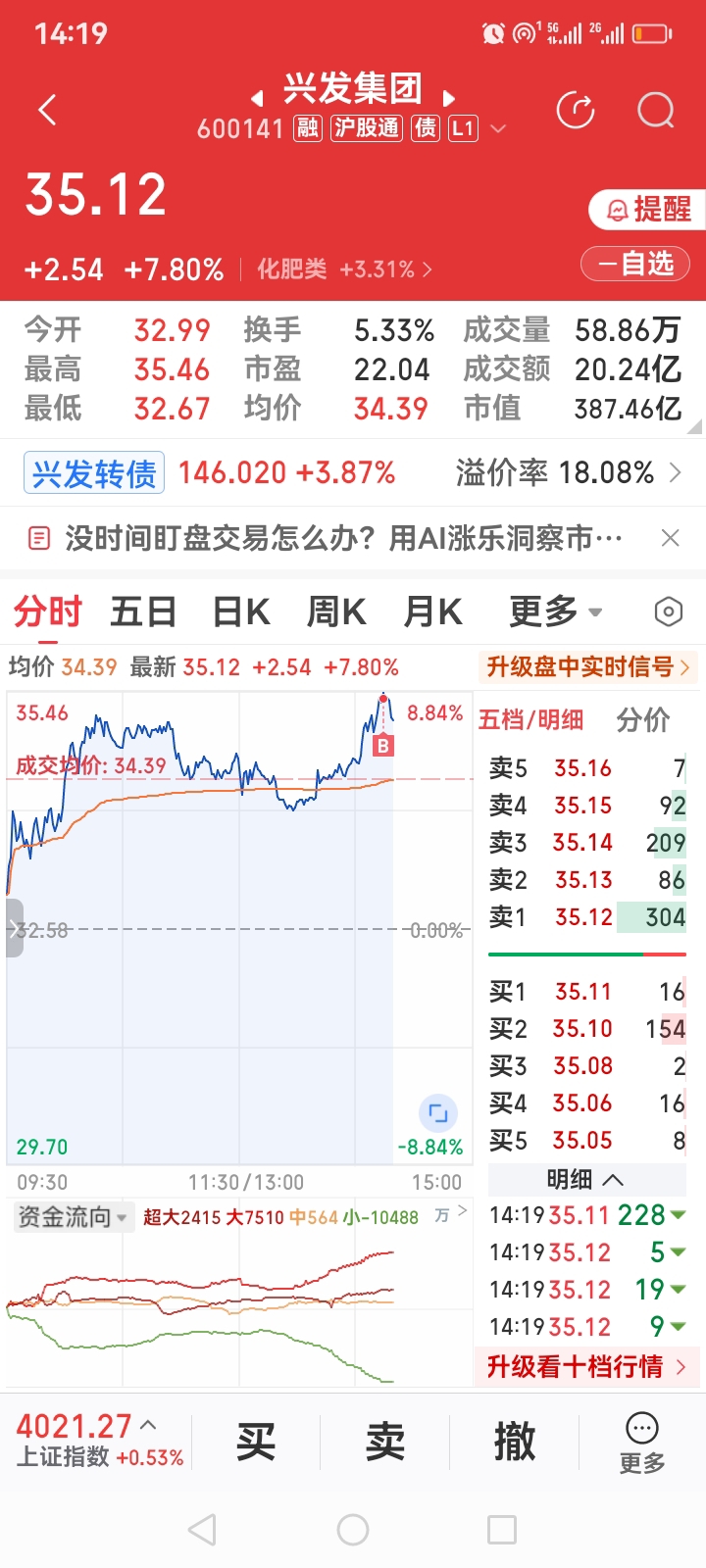 $兴发集团(SH600141)$ 我的川恒股份不涨,你也别想涨,我直接买崩你,一起跌吧