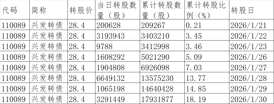 转股进度-1月30