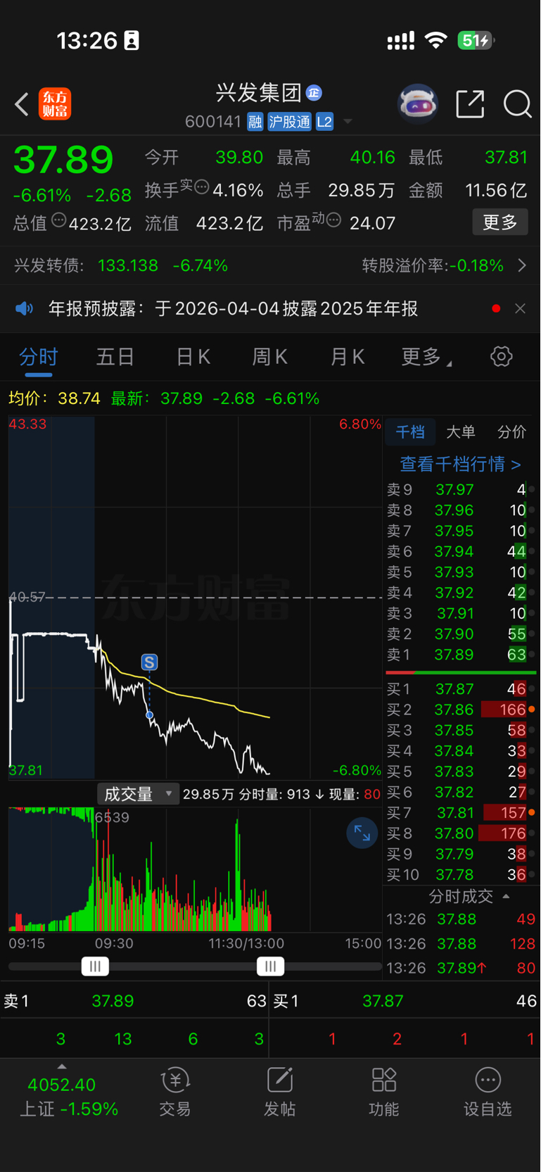 $兴发集团(SH600141)$ 周五进来就吃套,上午幸亏割了