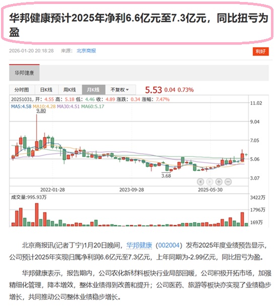 华邦健康预计2025年净利6.6亿元至7.3亿元,同比扭亏为盈