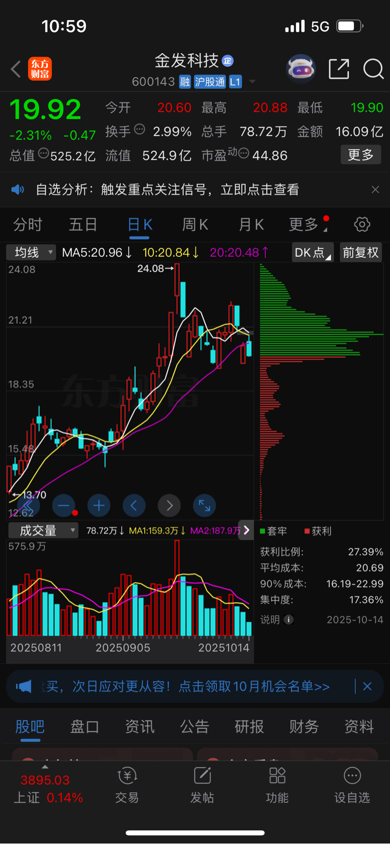 $金发科技(SH600143)$ 莫慌,主力也套着
