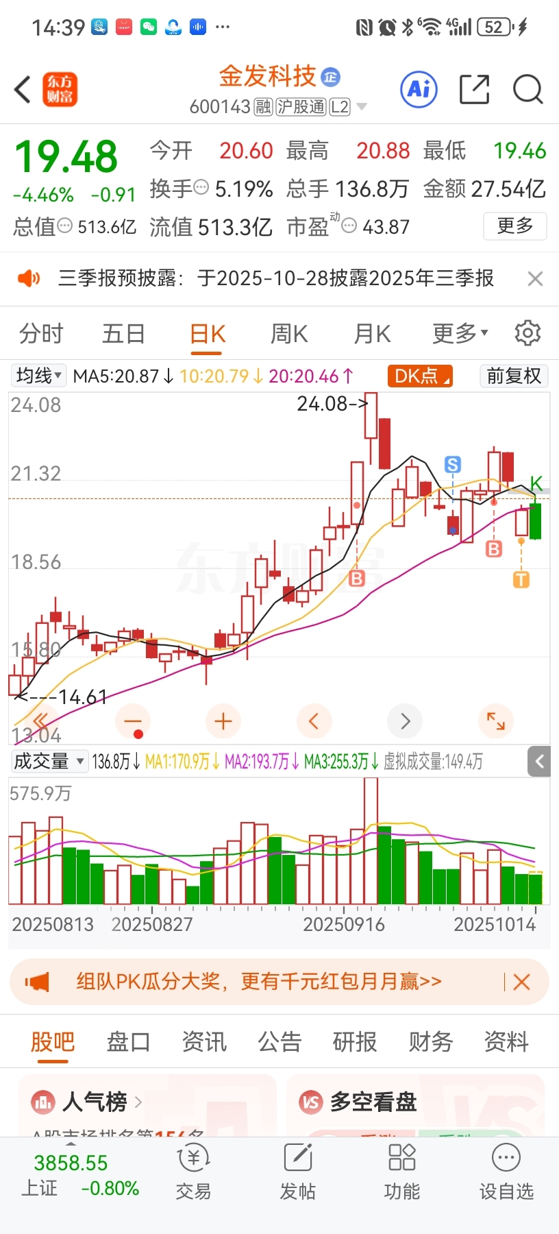 $金发科技(SH600143)$ 昨天假阳,今天真阴,。如果今天低开高走,包裹昨天的假阳就好了,可是今天高开低走,明天生死难料,如果低开低走,那估计最近都阴跌不止了