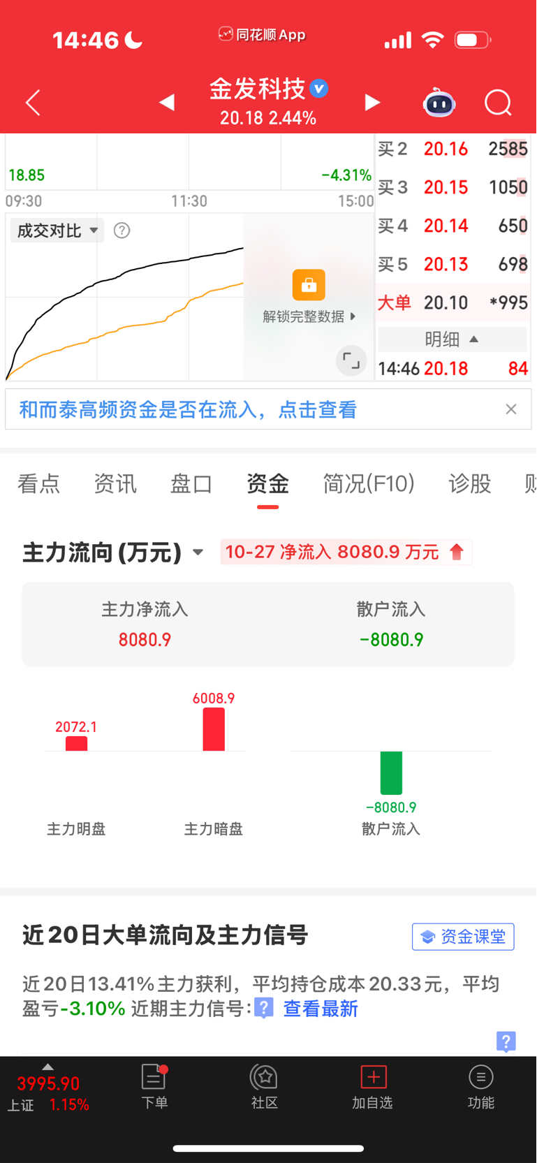 $金发科技(SH600143)$ 主力资金净流入,暗盘资金大幅流入!