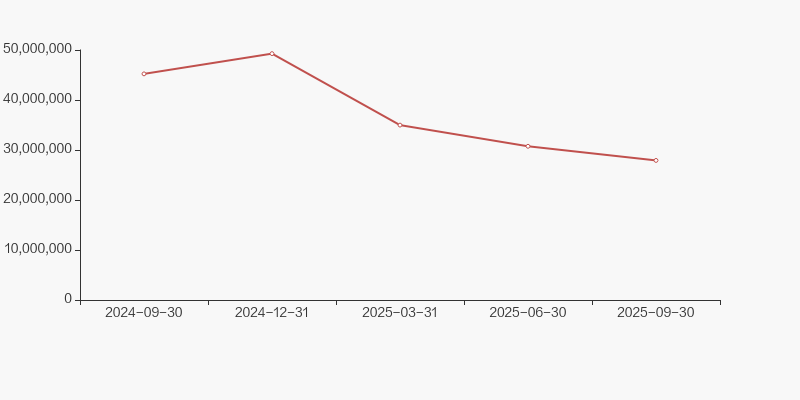截至2025年9月30日,公司最新总股本为26.37亿股,其中流通股本为26.35亿股。户均持有流通股数量由上期的1.28万股下降至6663股,户均流通市值13.99万元。
