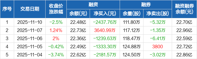金发科技:融资净偿还2437.76万元,融资余额22.48亿元(11-10)