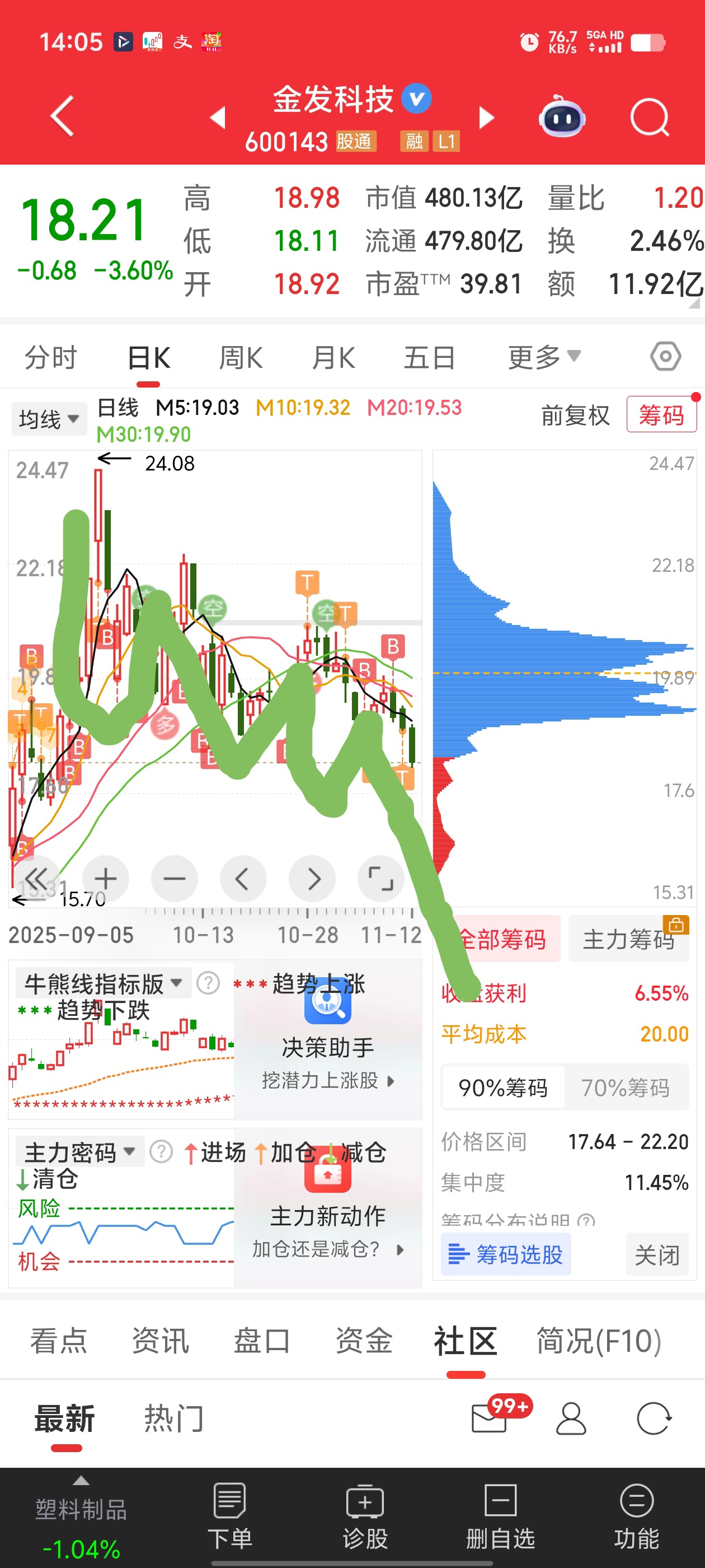 $金发科技(SH600143)$ 一浪还比一浪低,下跌中继