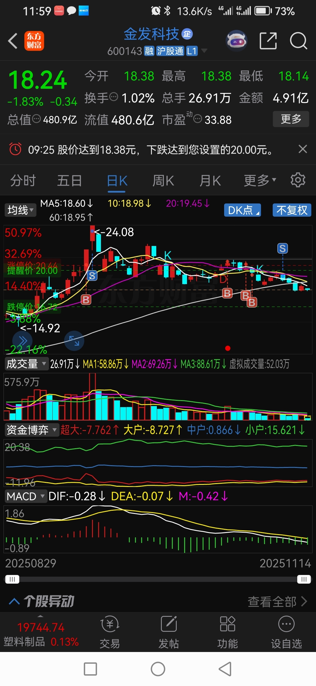 $金发科技(SH600143)$  我看你要跌到啥时候,,。。