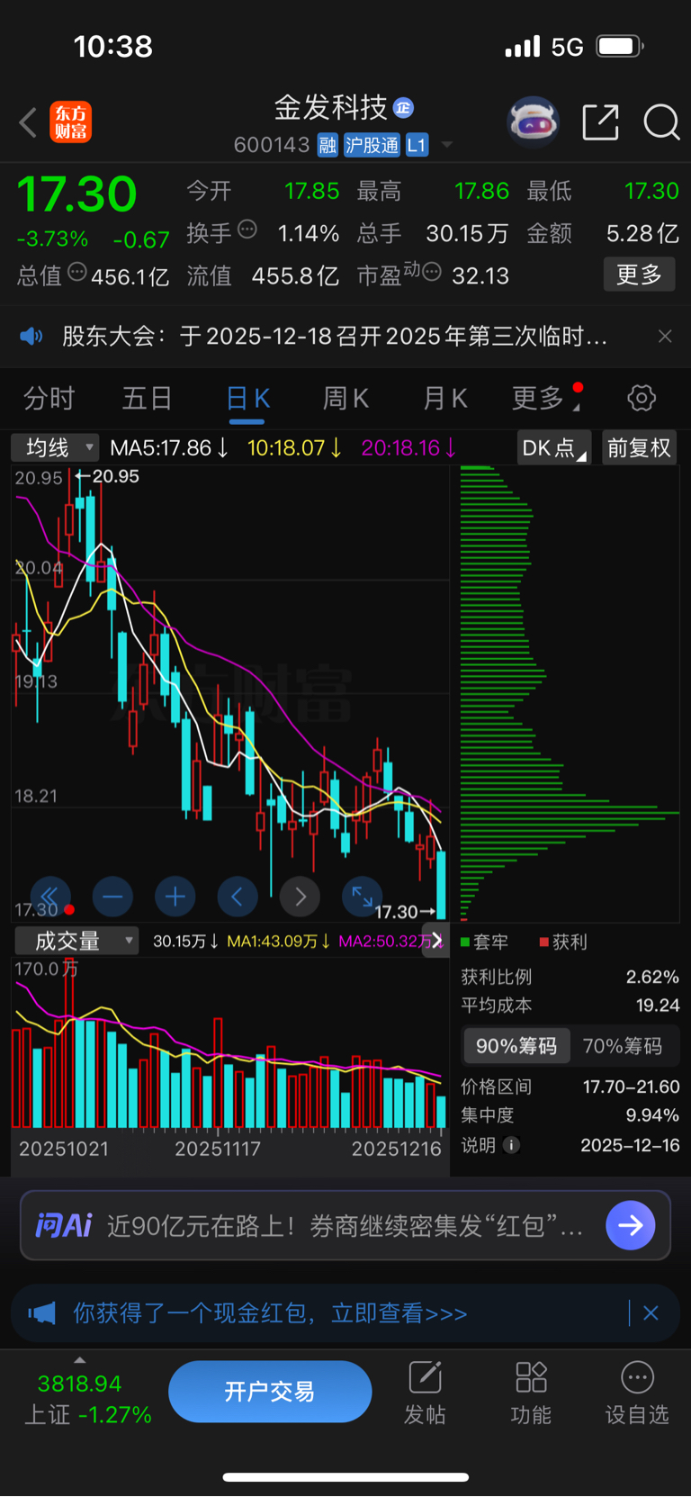 $金发科技(SH600143)$ 全绿了,泥巴个巴子