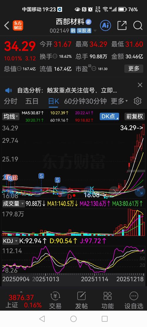 我10月24卖了西部材料,然后重仓买了金发,亏死了!