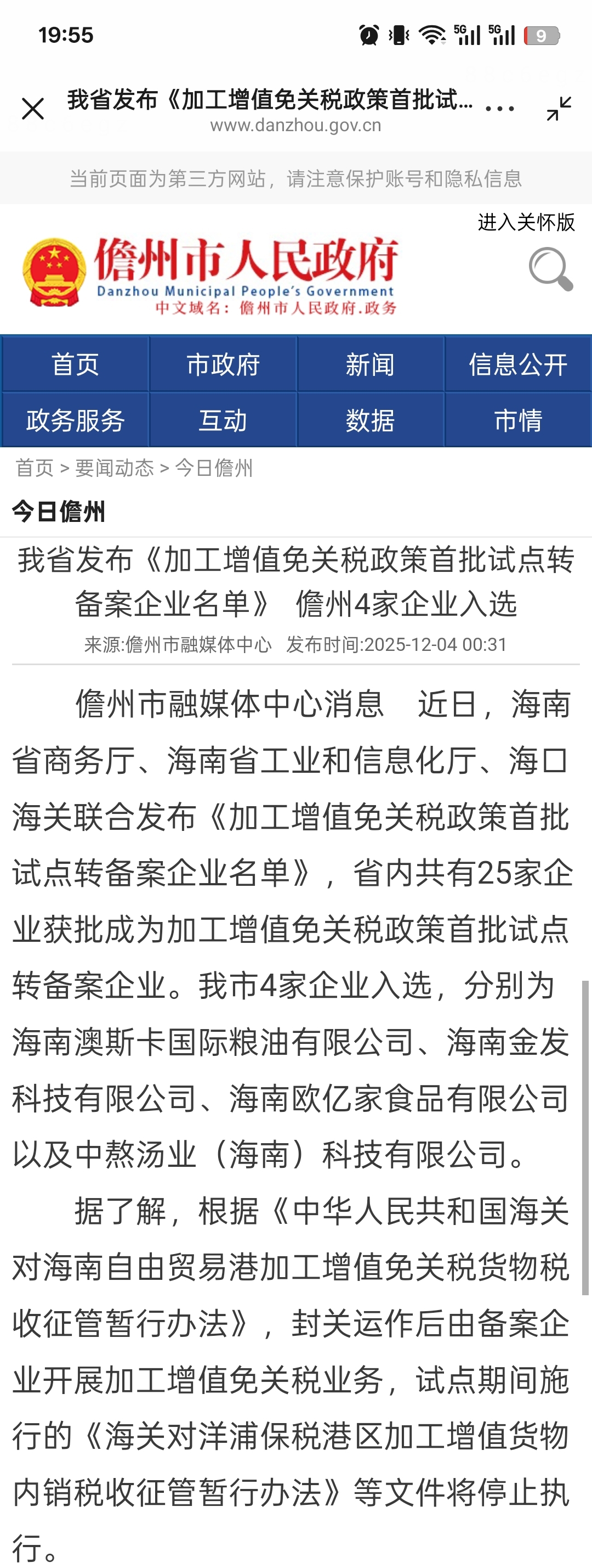 海南全资子公司儋州市首批试点免关税4家企业入选,其中就有海南金发科技有限公司