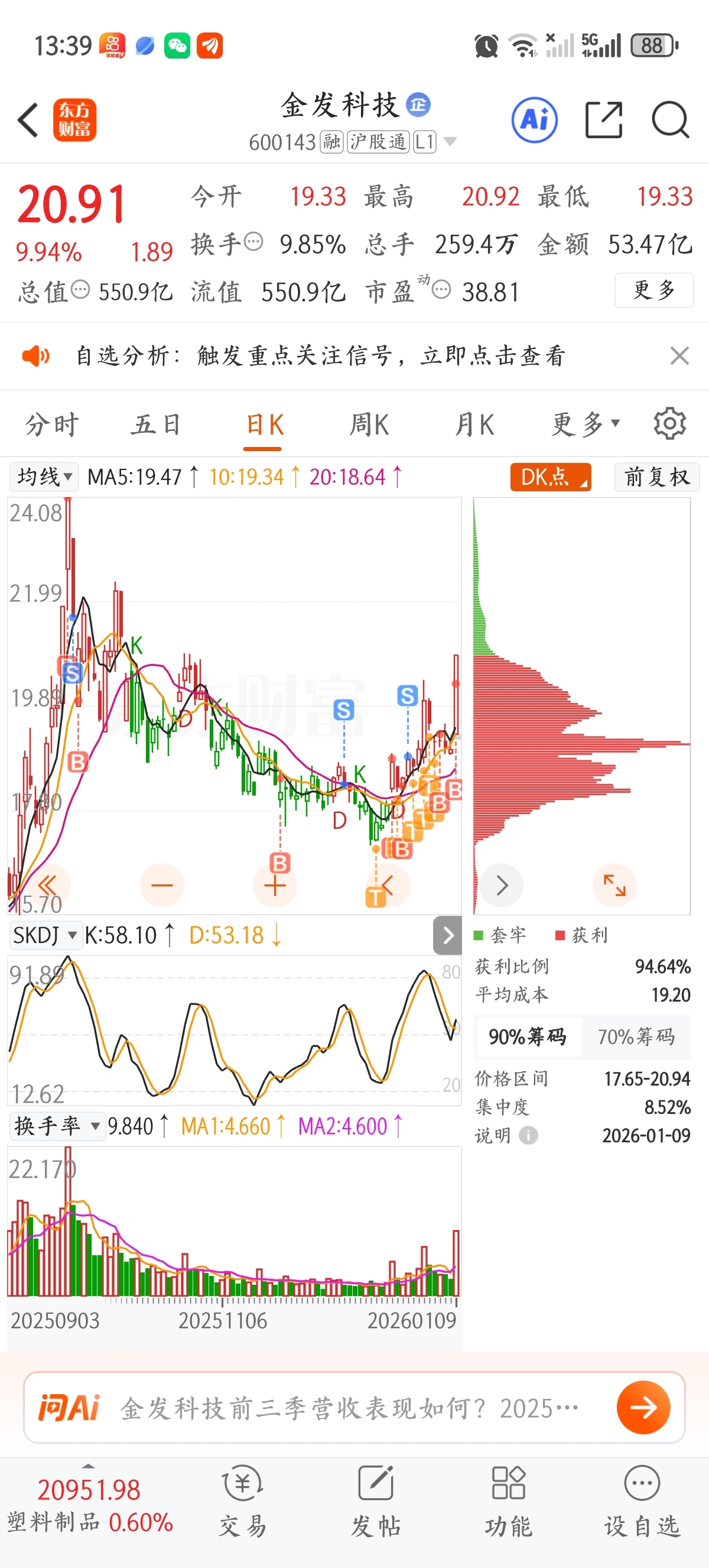 今天我全仓梭哈。套了我4个月,星期一不涨停我就完了。