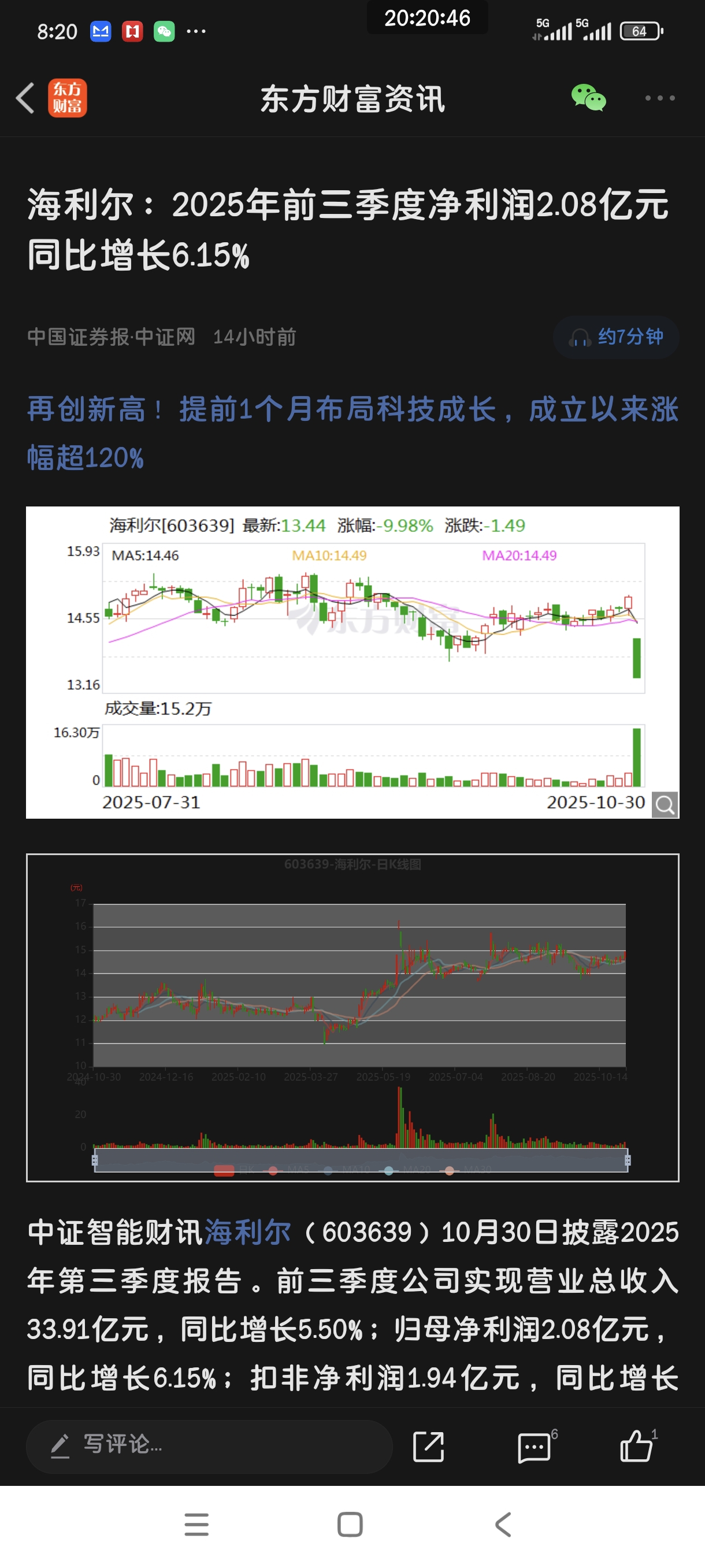 海利尔,昨天业绩大幅提升,今日直接跌停就问你牛不牛,看业绩害死人,全凭主力意愿