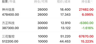神州信息:昨天高开高走,成功晋级2连版,前面说过这飘是目前上市公司中维数不多的带有金融属性的科技公司,周三当天张婷突破平台压力,这就为后面打开新空间,而且当前还没有放量,所以盼中跟风较少,接下来不排除有走穿越预期,支撑情况下今天大概还有溢价,但是考虑到周五也要留意市场的对线。