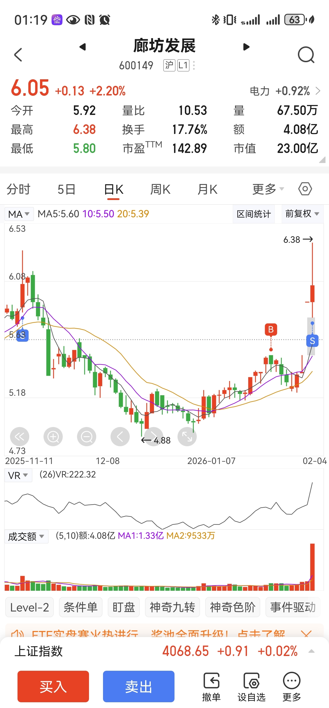 $廊坊发展(SH600149)$ 我6.3走了好好涨吧