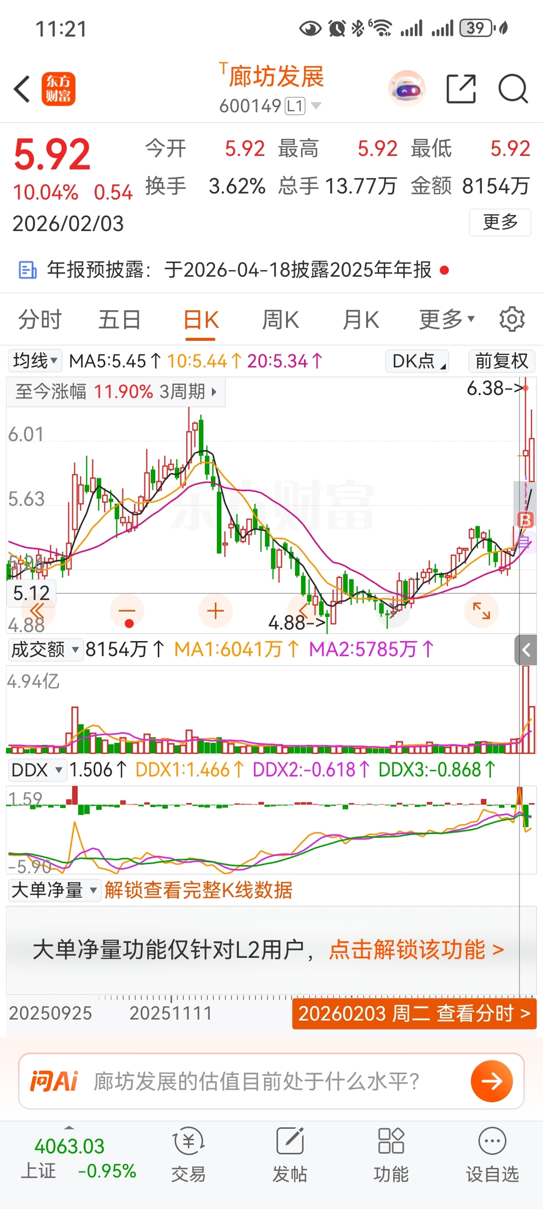 $廊坊发展(SH600149)$ 第一版拉涨停才8000万,你玩啥呢啊?