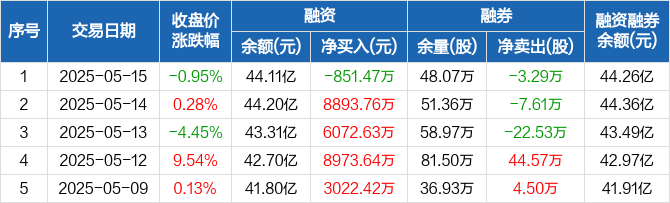中国船舶:融资净偿还851.47万元,融资余额44.11亿元(05-15)
