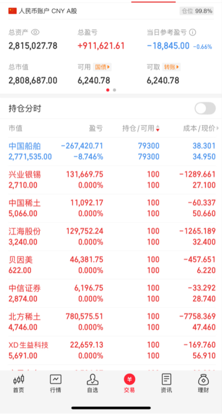 $中国船舶(SH600150)$ 我持仓以来亏损比例最大的一支股,但是一点也不慌。终将回归价值的!