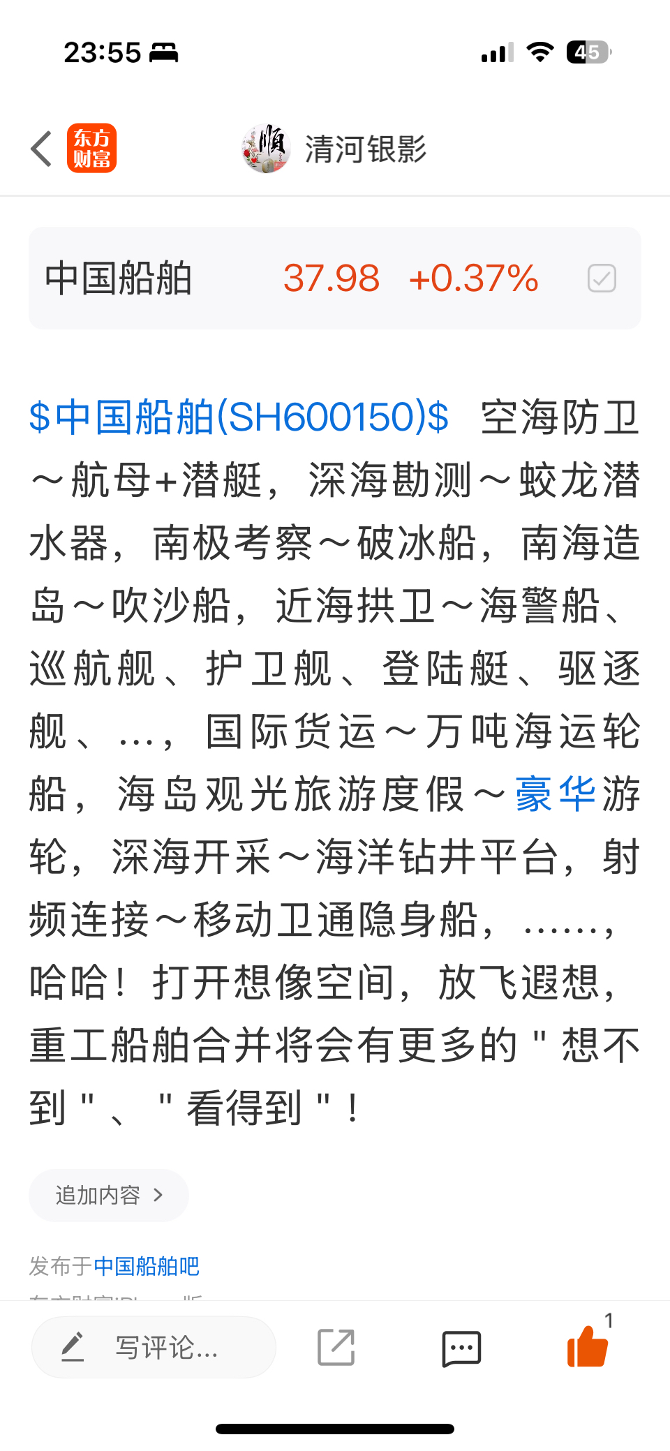 温馨提示: 1.根据《证券法》规定,禁止编造、传播虚假信息或者误导性信息,扰乱证券市场;2.用户在本社区发表的所有资料、言论等仅代表个人观点,与本网站立场无关,不对您构成任何投资建议。用户应基于自己的独立判断,自行决定证券投资并承担相应风险。《东方财富社区管理规定》