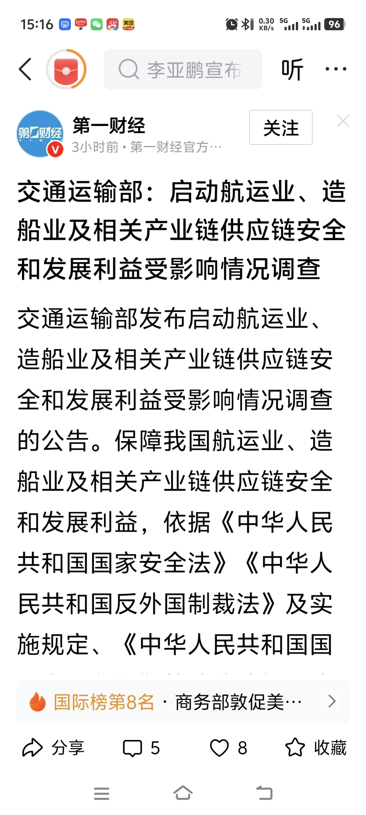 $中国船舶(SH600150)$ 开始出台政策进行保护了!