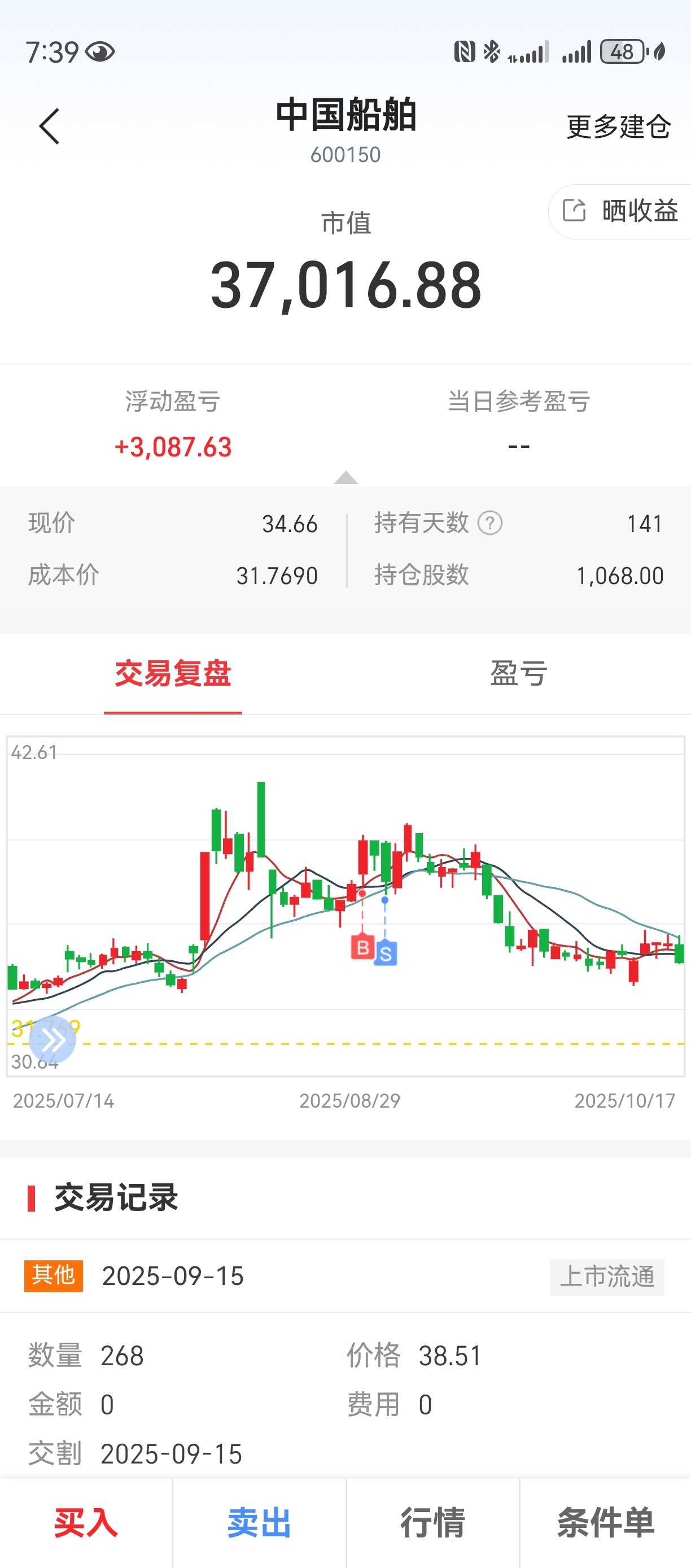 $中国船舶(SH600150)$ 还有9个点可以跌