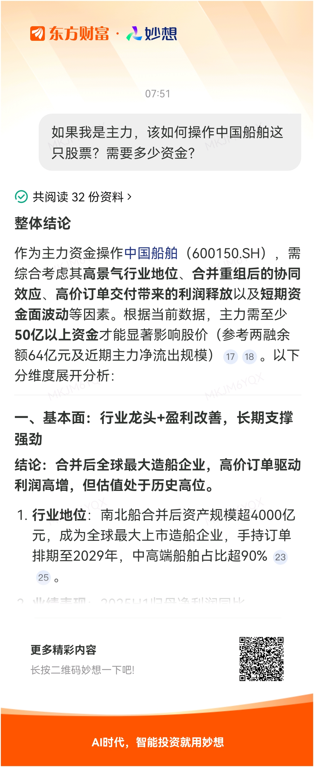 #@妙想,你怎么看?# 妙想一下:如果我是主力,该如何操作中国船舶这只股票?需要多少资金?