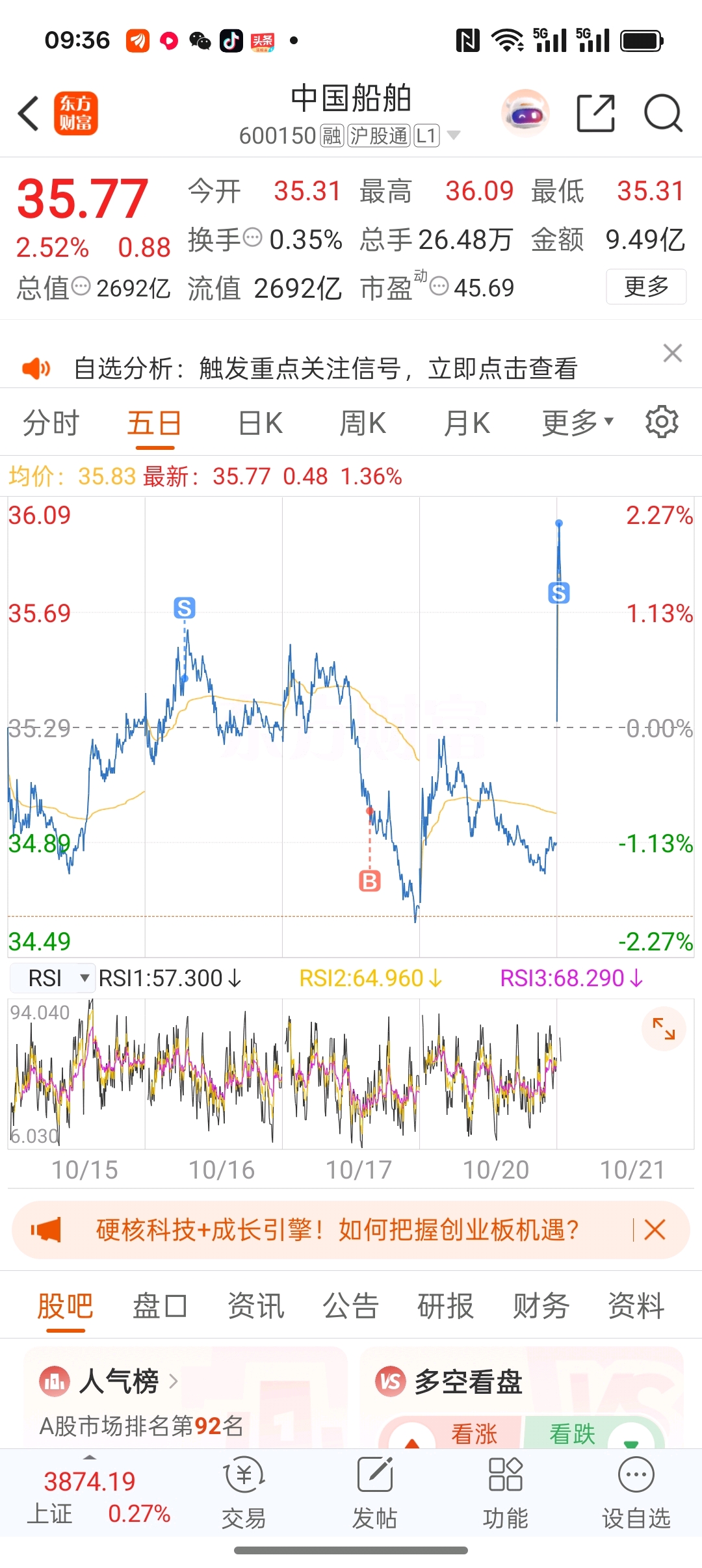 $中国船舶(SH600150)$ 完了完了,快下来接我