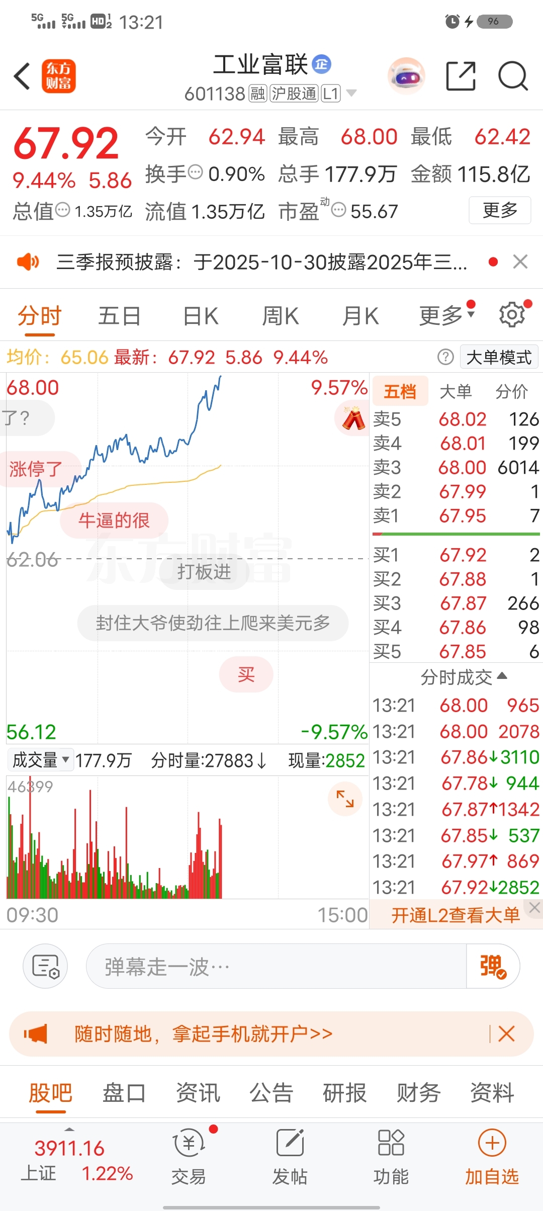 $中国船舶(SH600150)$ 买工业富联都不要买破船,还不跑等待何时,工业富联董事长说了股价上100,开会的时候讲的。珍惜吧。